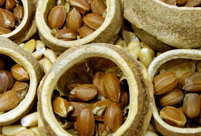 They grow inside a carapace that is commonly known as a "monkey Pot", its size can vary between 8 and 15cm in diameter, once outside the ¨pot¨ the Magdalena River Seeds have a semi-rigid layer that separates and protects them . Inside the ¨Pot¨ you can find from 8 to 14 seeds depending on the size of the ¨Pot¨.